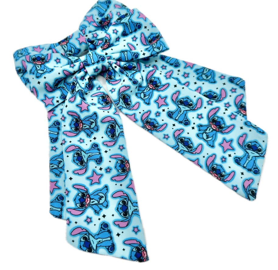 Large Long Tailed Blue Stitch Hair Bow